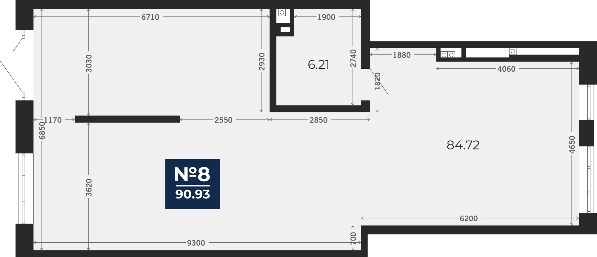 Коммерческое помещение № 8, 90.93 кв. м